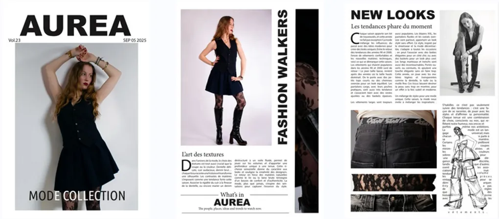 Réalisation d’une double page de magazine de mode avec Adobe InDesign, incluant une couverture et une mise en page intérieure. Ce projet m’a permis de développer mes compétences en mise en page éditoriale tout en respectant les codes visuels d’un magazine de mode.